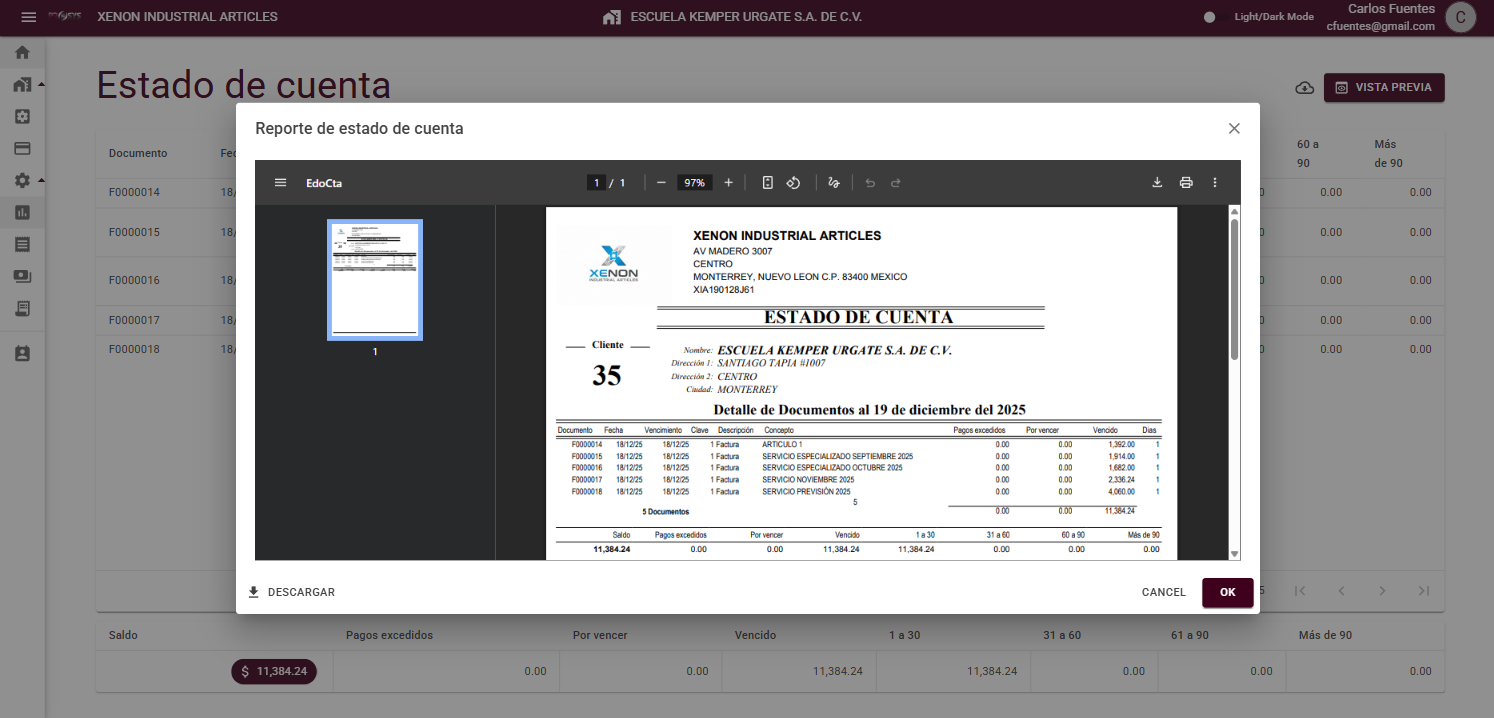 O bien tambien podemos visualizar el reporte de estado de cuenta para que visiblemente podamos tenerlo ya sea en PDF o bien mandarlo imprimir según nuestras necesidades